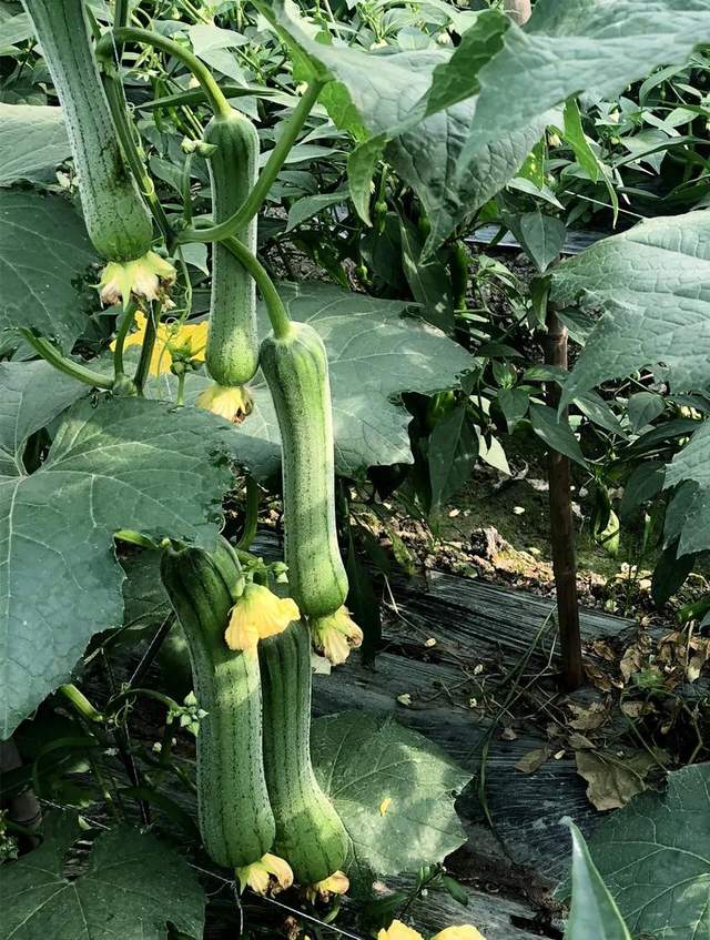 我住四川峨眉山市符溪鎮(zhèn)明星村,名叫王俊英。我今年種植了“優(yōu)比1號(hào)”絲瓜,是與辣椒套栽的。按我們四川話說(shuō),“優(yōu)比1號(hào)”結(jié)瓜真是太夸張了!太恐怖了!結(jié)瓜特別早,比黃瓜還結(jié)瓜多,因?yàn)辄S瓜也有空節(jié)位??!但“優(yōu)比1號(hào)”絲瓜沒(méi)有空節(jié)位,真是節(jié)節(jié)有瓜,奇怪的是每個(gè)瓜都能長(zhǎng)大,個(gè)個(gè)中棒形,很齊整,商品性這么好,菜販一看就喜歡!