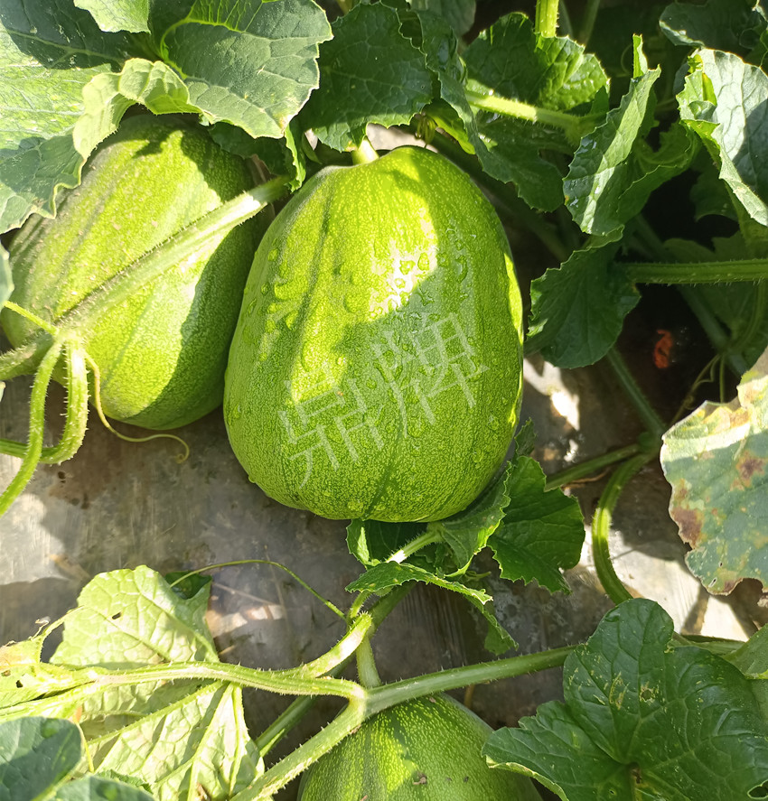 “丑八怪”甜瓜是一個較好的地方品種,以甜度高、抗性強而被大家熟知,但缺陷是果實齊整度差,大瓜可達5斤、小瓜只有半斤,這樣就嚴重影響了甜瓜的商品性。鼎牌公司以“丑八怪”為母本,以另外的品種為父本,組合了幾十個雜交品種,最后選出了二個有特色的雜交組合。一個是“金美2號”,其特點是抗枯萎病能力強,在連作地栽培不死棵,或很少死棵,果實大小均勻,甜度高,品質(zhì)好。第二個是“秋甜1號”,其特點是抗高溫能力強于其它品種,特別適宜夏播秋收,果實大小均勻,甜度高,品質(zhì)好。