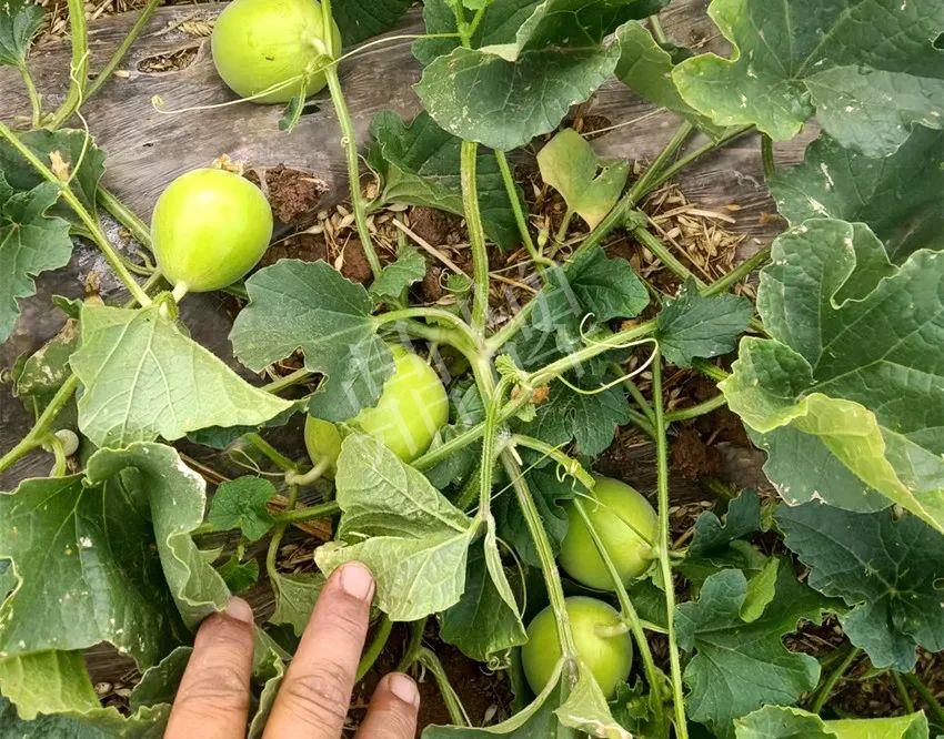 ▲麥茬套種“雪奶香1號(hào)”甜瓜