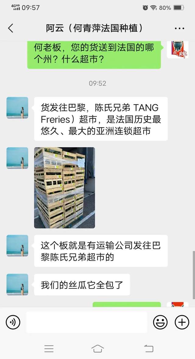 二是,我的“優(yōu)比1號”絲瓜種在法國,銷在法國。這邊農(nóng)產(chǎn)品價格普遍比國內(nèi)高。“優(yōu)比1號”品質(zhì)好,深受亞裔們喜歡,這幾年我的絲瓜都是直接被法國巴黎陳氏兄弟超市(法國歷史最悠久、最大的亞洲連鎖超市)收購的。據(jù)超市采購經(jīng)理說,與其它絲瓜相比,“優(yōu)比1號”品質(zhì)更好,更受歡迎;在超市的零售價折合人民幣每公斤45元。