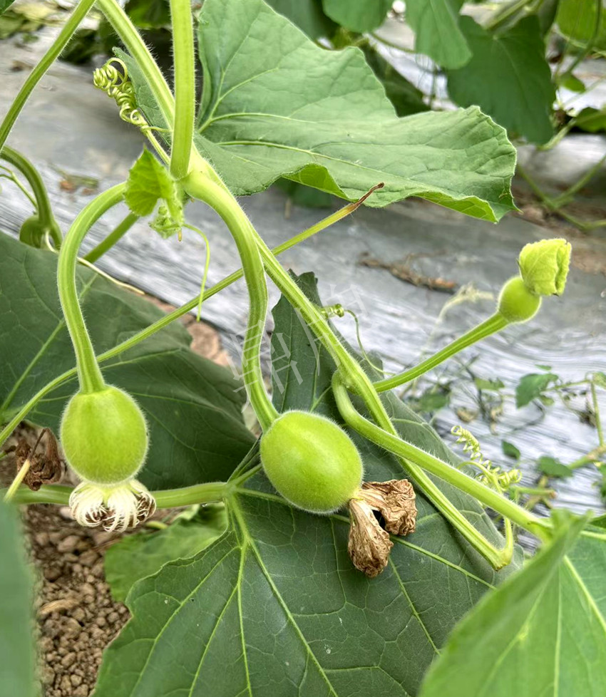 在瓠瓜的坐果期,王老板向筆者發(fā)了幾張“圓滿1號”瓠瓜的照片;這次問他“春棚如意”的照片,他說換了手機,照片沒有了。下面就只能刊出幾張“圓滿1號”瓠瓜的照片了,以饗讀者!