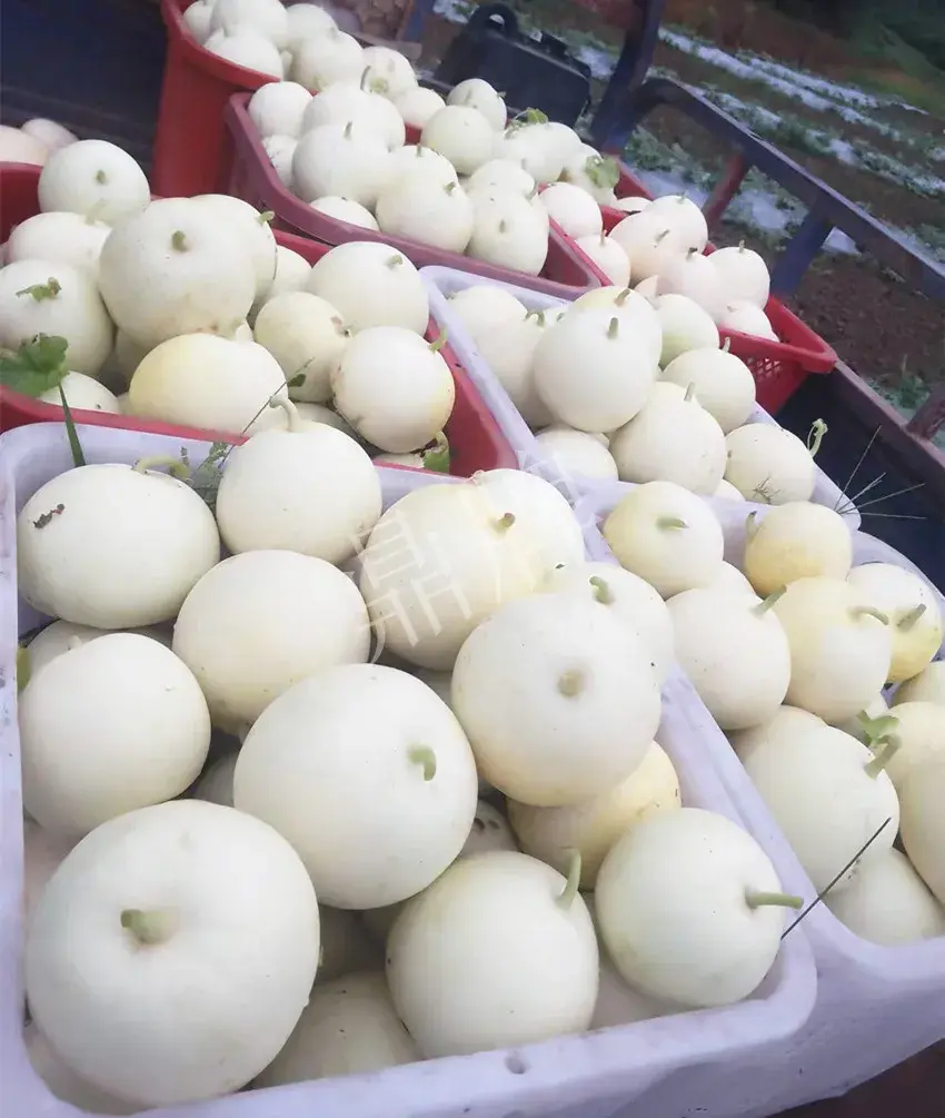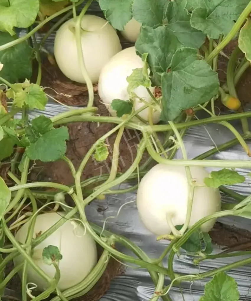 由于自己有很多別的事情忙,很少去管理這一畝地的甜瓜,到了7月中下旬,瓜可以開始賣了,采收時才發(fā)現(xiàn)這個品種不是一般的好,而是太好了!坐果是一窩窩的,白白胖胖,不是一般的白,但我又說不出來,只能按《良種與良法》書上說的“果皮、果肉潤白,有一種天然質(zhì)感,看到就讓人喜歡”!