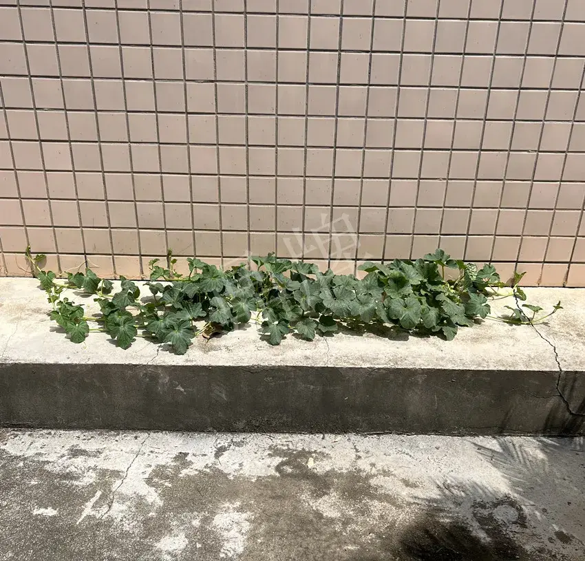 今日請各位看看本公司科研人員做的一個奇葩試驗——在特高溫的條件下,讓甜瓜苗在水泥板上生長。