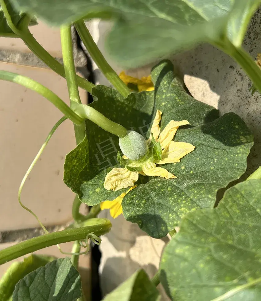 以下照片拍攝于8月29日下午3:42分,當(dāng)時的氣溫30℃,最高氣溫31℃。離上次拍攝只有幾天時間,這個時候的甜瓜葉片變得綠油油的了,上次結(jié)的瓜也長大了,并且又結(jié)了不少小瓜(沒有進(jìn)行人工授粉,也沒有使用“氯吡脲”,發(fā)現(xiàn)有螞蟻在幫助傳粉)。