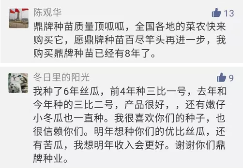 被認可的感覺真的很欣慰!我們一直在努力,就是為了能夠給大家提供優(yōu)質(zhì)的種子,希望瓜農(nóng)、菜農(nóng)多賺錢。