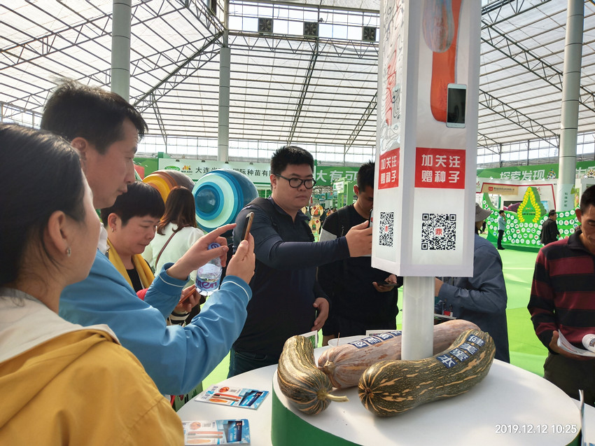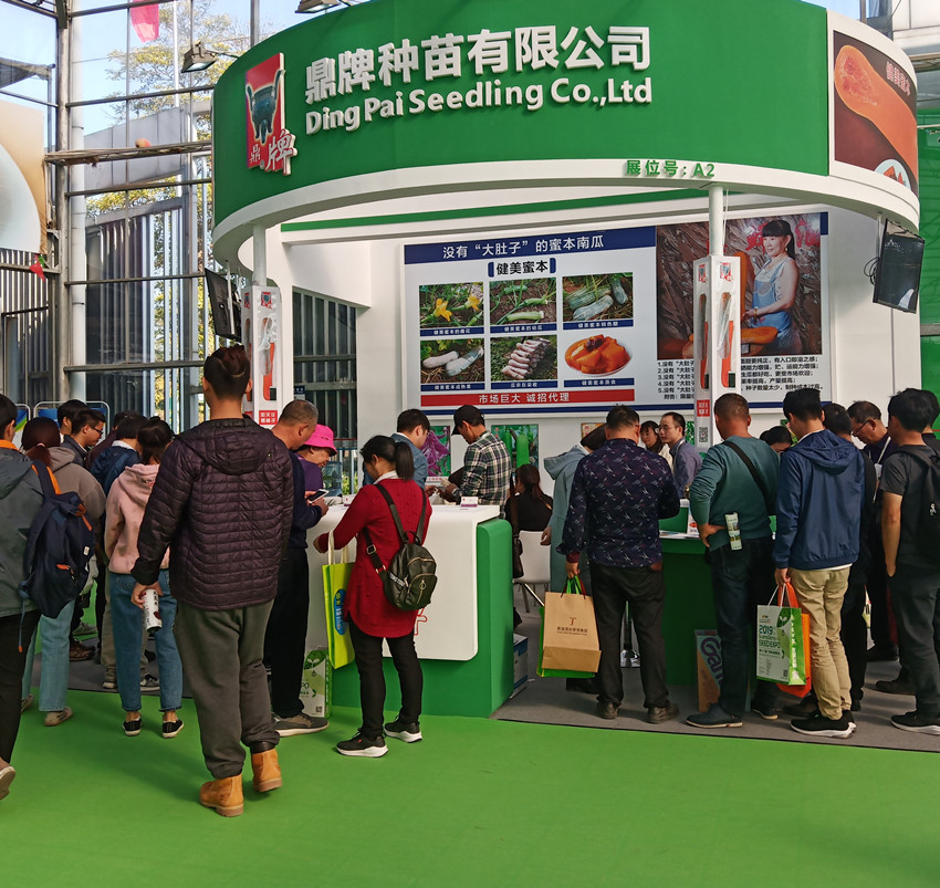活動現(xiàn)場,鼎牌展位(A2)在展示大廳脫穎而出??蜕虃冏叩秸古_前紛紛停下腳步,被鼎牌獨創(chuàng)的“沒有大肚子的健美蜜本南瓜”所吸引。