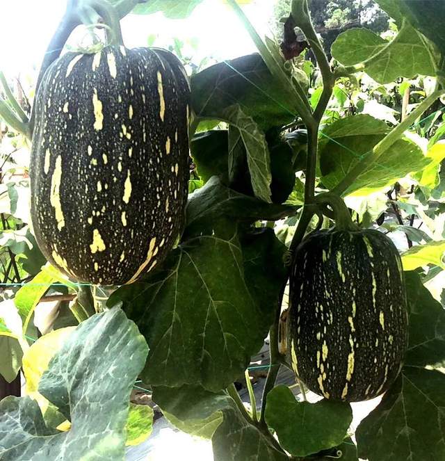 ▲ 開始轉色的“健美蜜本”南瓜,