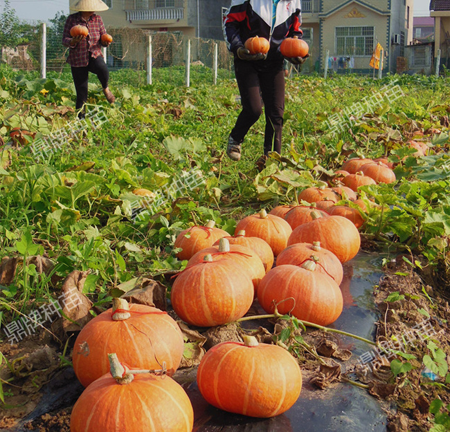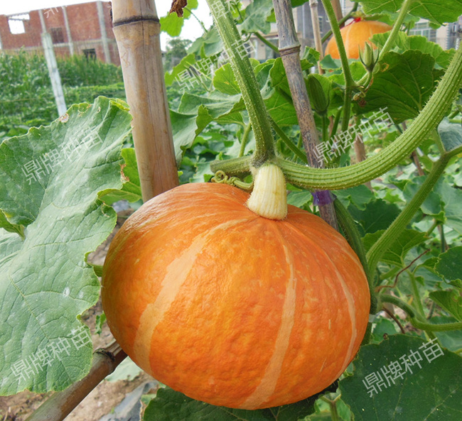 早熟,高端西洋南瓜,單瓜重3公斤左右,坐果多,果肉脆,質粉,味甜,高品質,畝用種量:爬地6袋,爬架9袋。