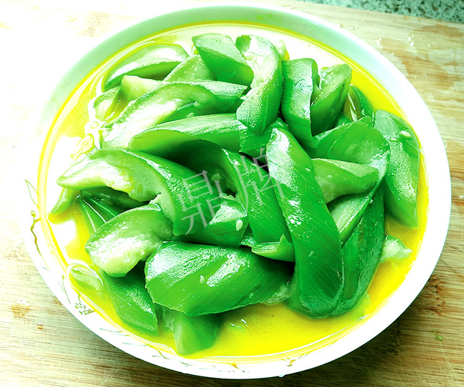 表皮淡黃,削皮后翠綠翠綠,炒熟后還是翠綠色,看到就想吃,吃上第一口是穤香的,吃上第二口是糯甜的,糯糯甜甜的口感,愛上了!